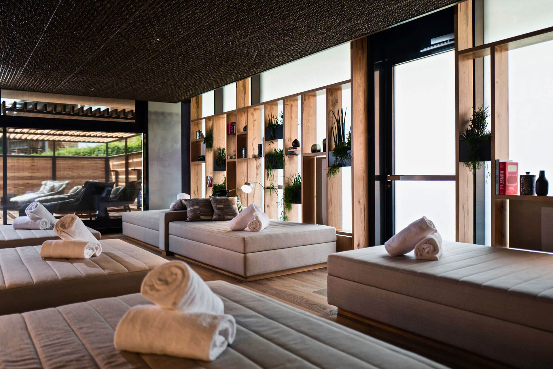 Herzstück ist die Panoramasauna mit eindrücklichem Blick in die Flimser Bergwelt. Aber auch das mystische Dampfbad, das sanfte Sanarium und der wunderschöne Ruheraum bieten Momente der Entspannung. Der Fitnessraum ist mit den modernsten Trainingsgeräten bestückt, und bei schönem Wetter lohnt die Terrasse mit bequemen Sitz- und Ruhemöglichkeiten. Für wertvolle Momente der Zweisamkeit steht zudem ein «Private Spa» zur Verfügung.