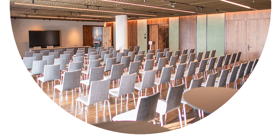 Die Meeting-Räumlichkeiten des Me and All Hotel Flims im STENNA Flims begeistern mit einer lichtdurchfluteten Atmosphäre und einem durchdachten Raumkonzept für Anlässe mit bis zu 100 Personen.